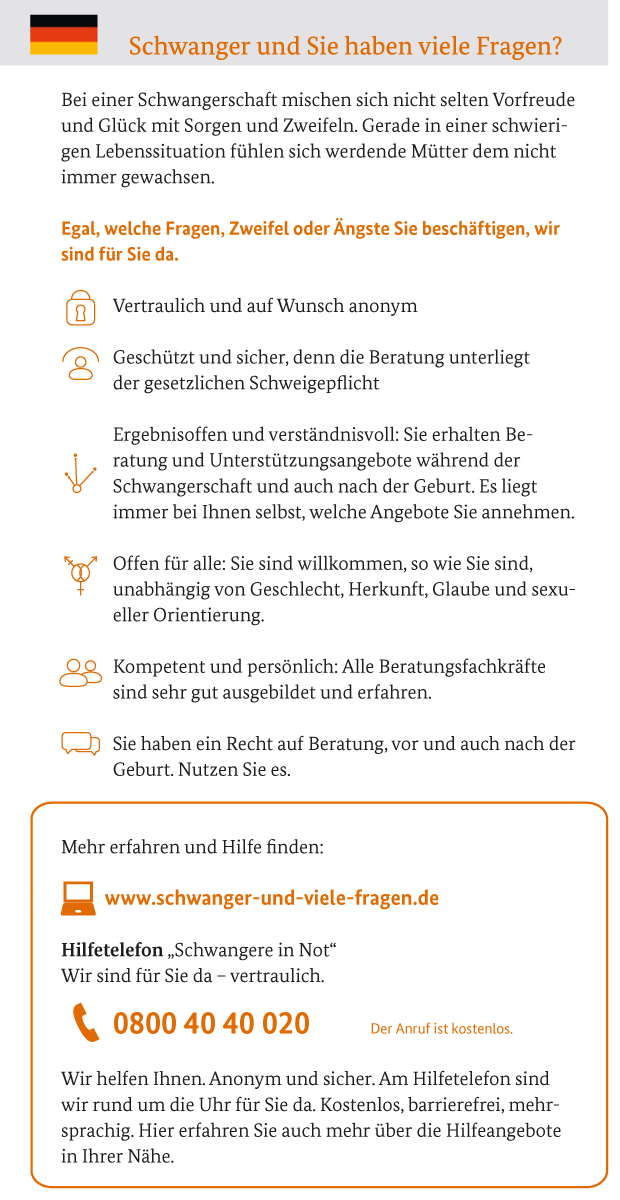HILFE UND UNTERSTÜTZUNG IN DER SCHWANGERSCHAFT