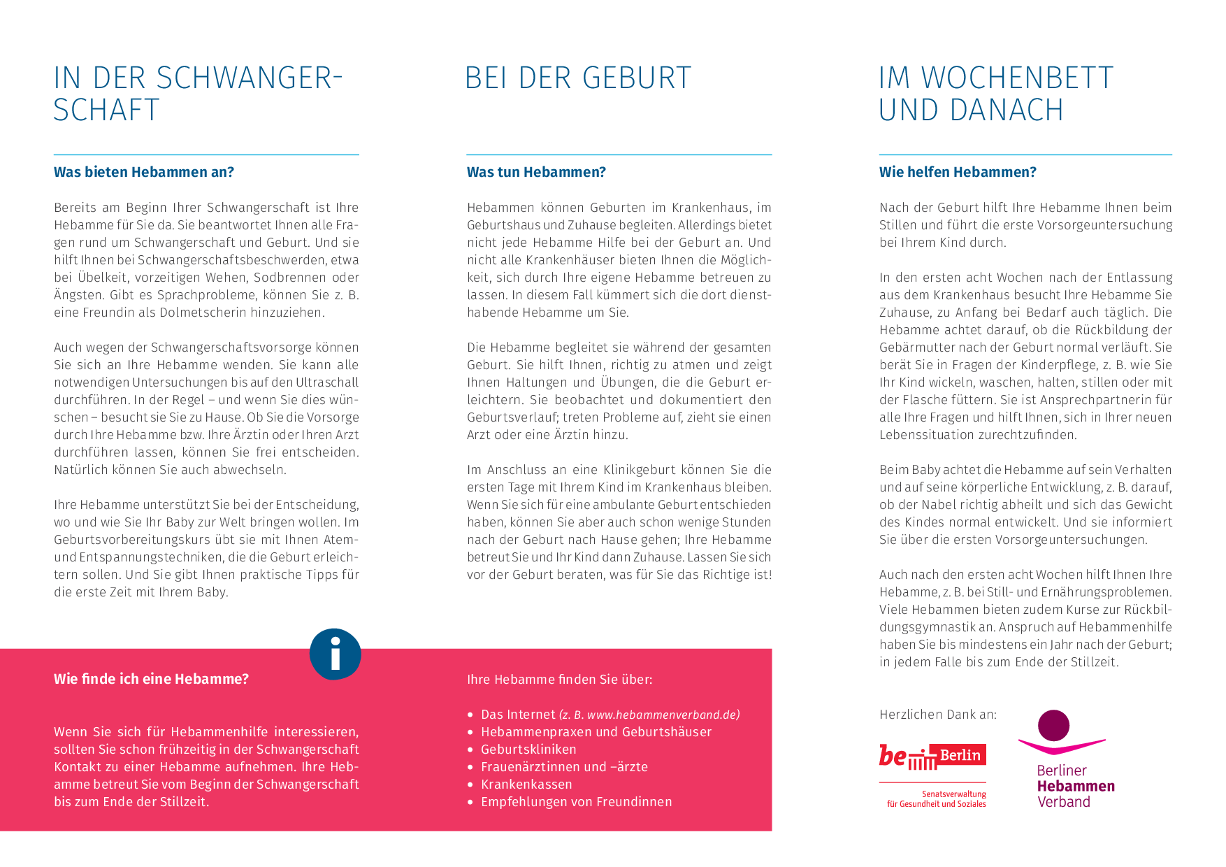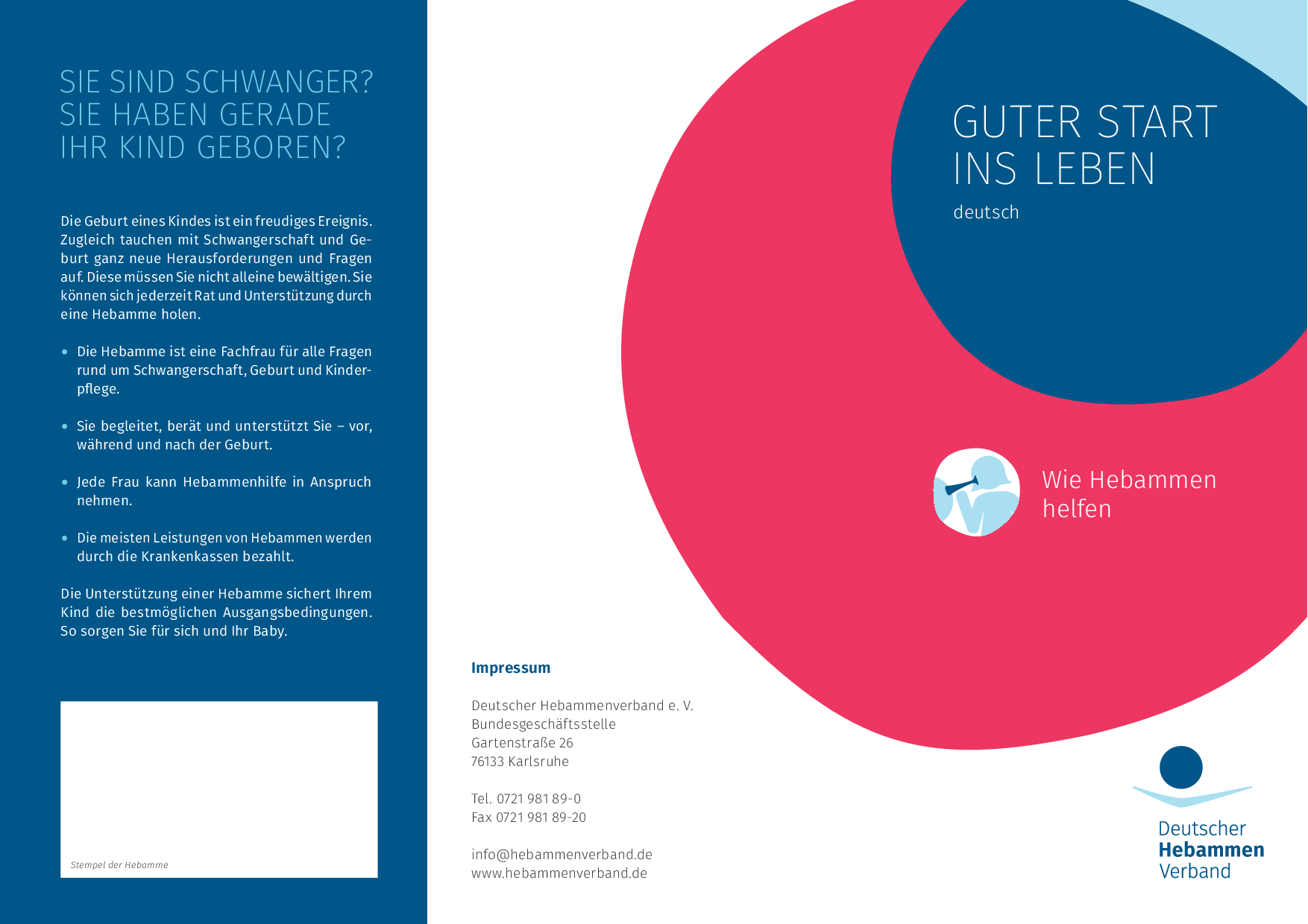 Faltblatt, 12 Seiten, Deutscher Hebammenverband, 2015