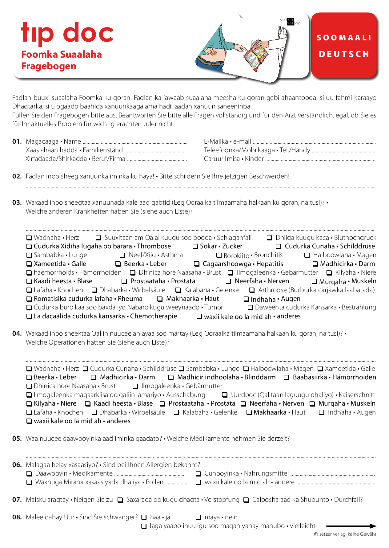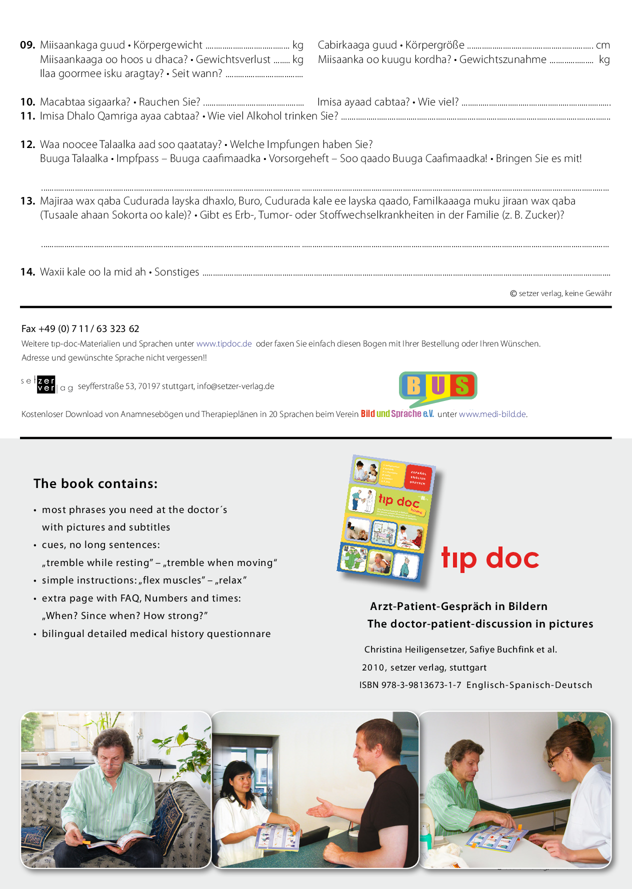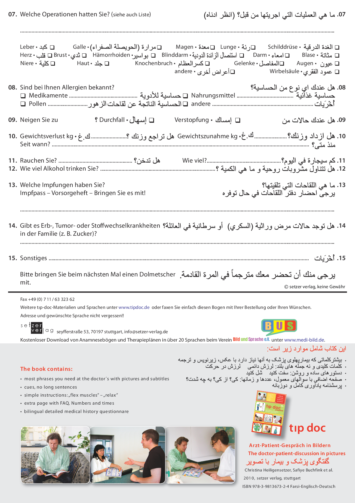 Kombinierbar mit den Anamnesebögen (siehe weiter unten) und weiteren Infoblättern
